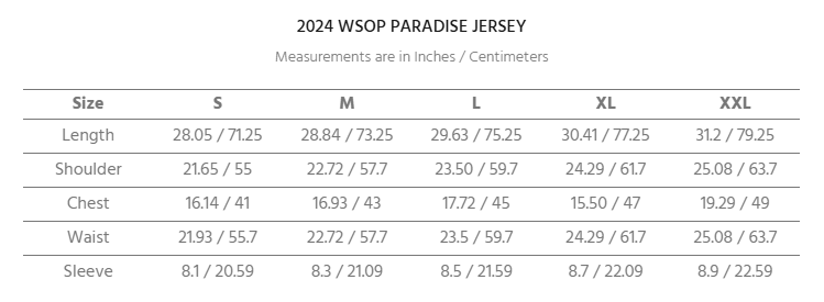 Отпразднуйте 2024 WSOP Paradise с нашей эксклюзивной майкой, выпущенной ограниченным тиражом. Этот уникальный дизайн, доступный только для клиентов GGStore, - идеальный сувенир на память об этом незабываемом событии.